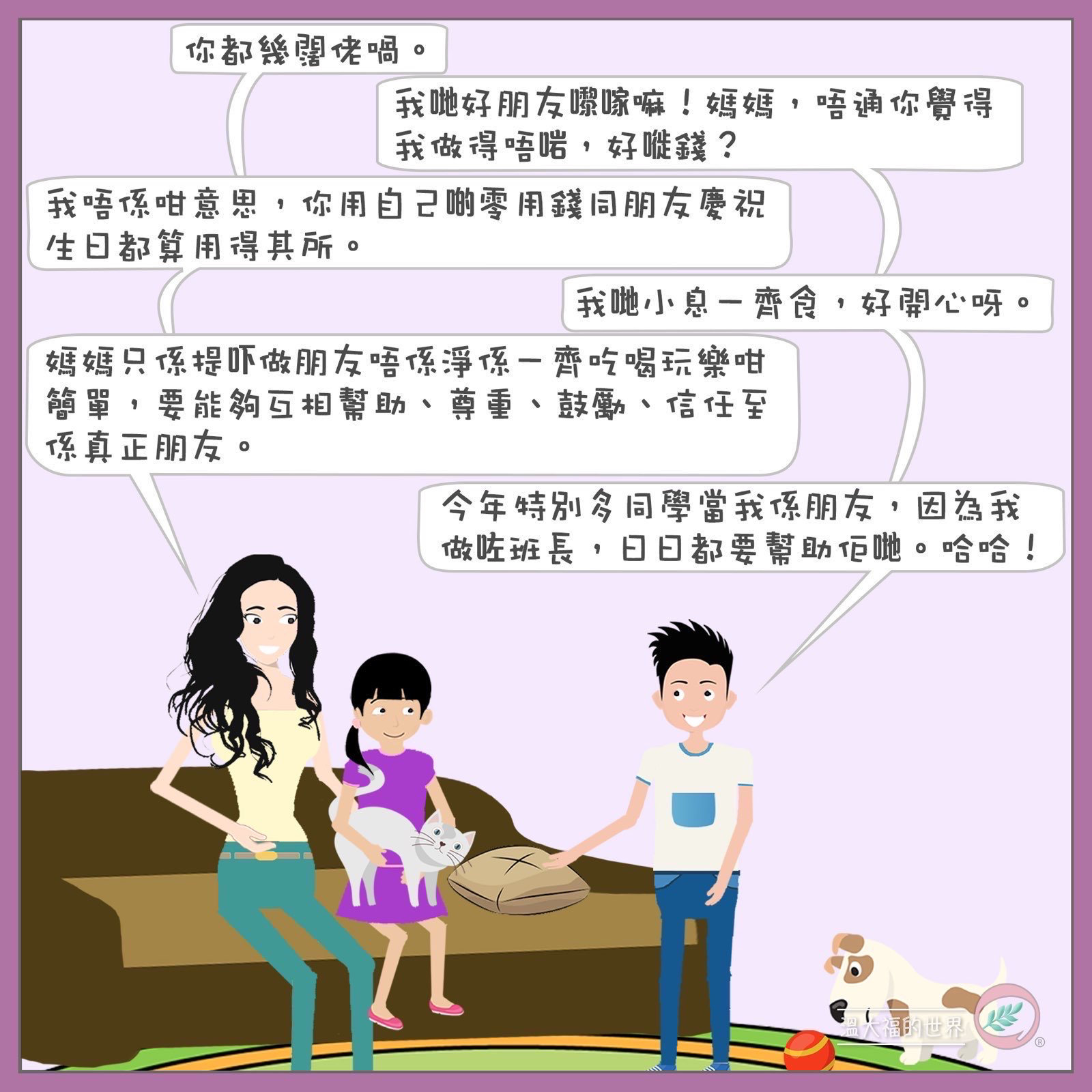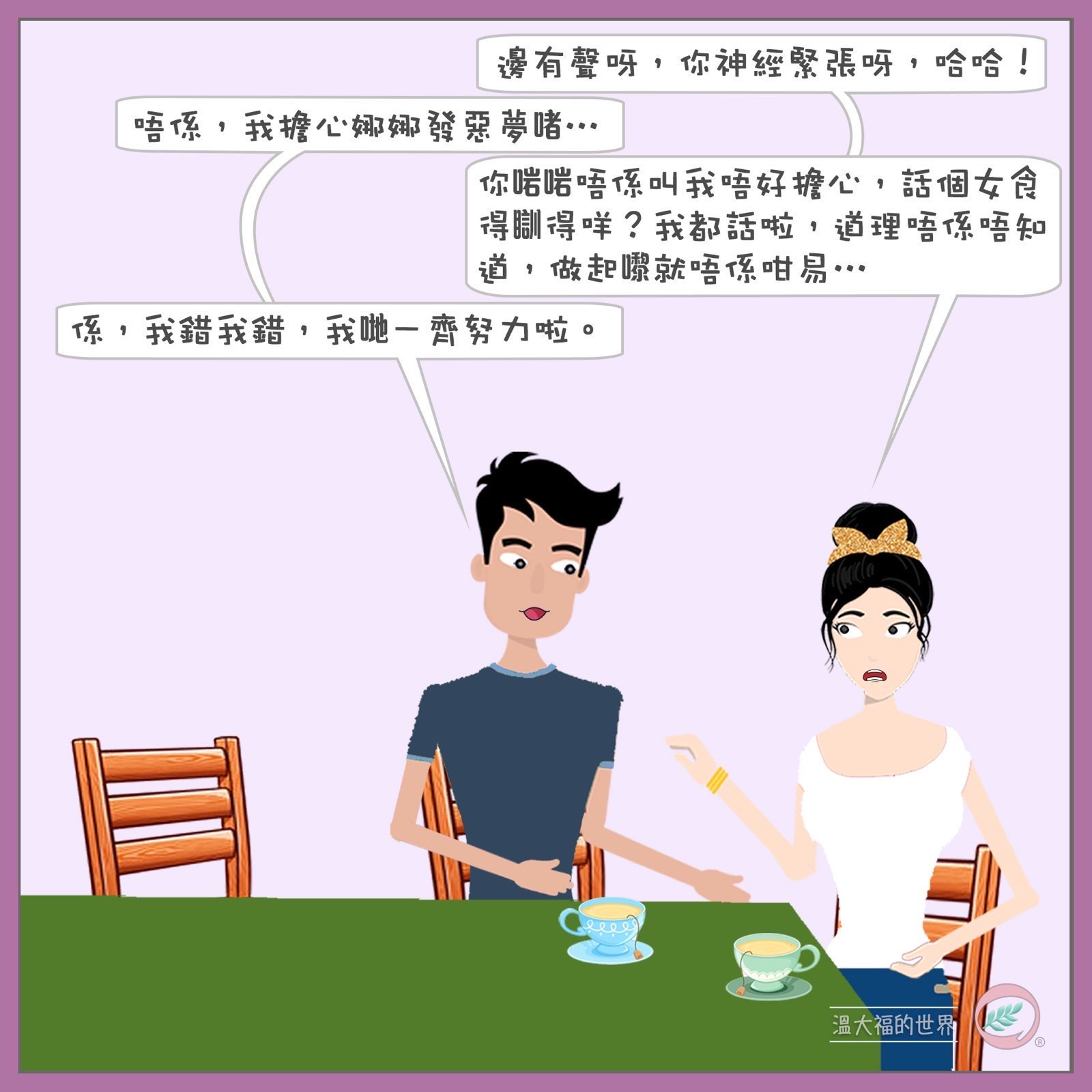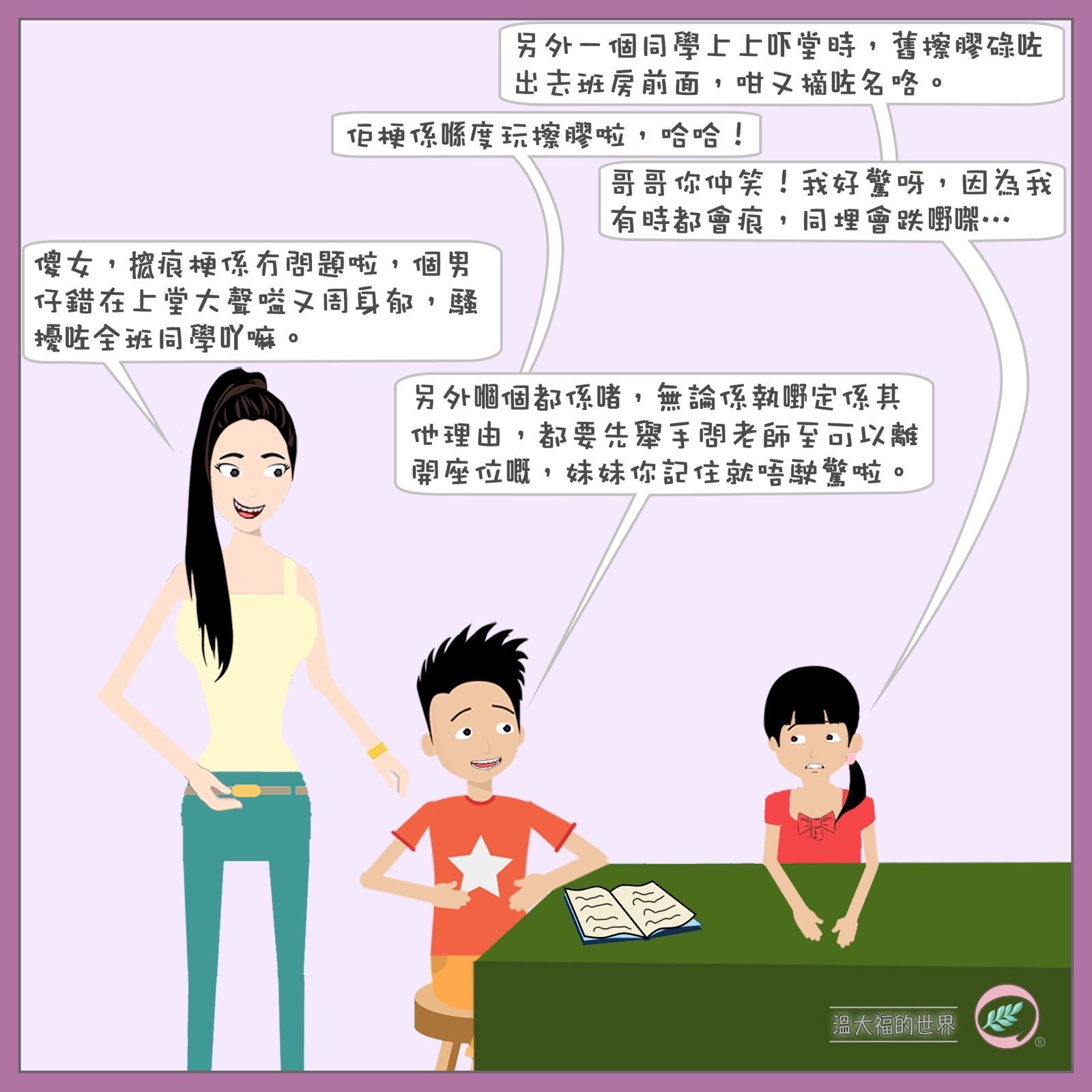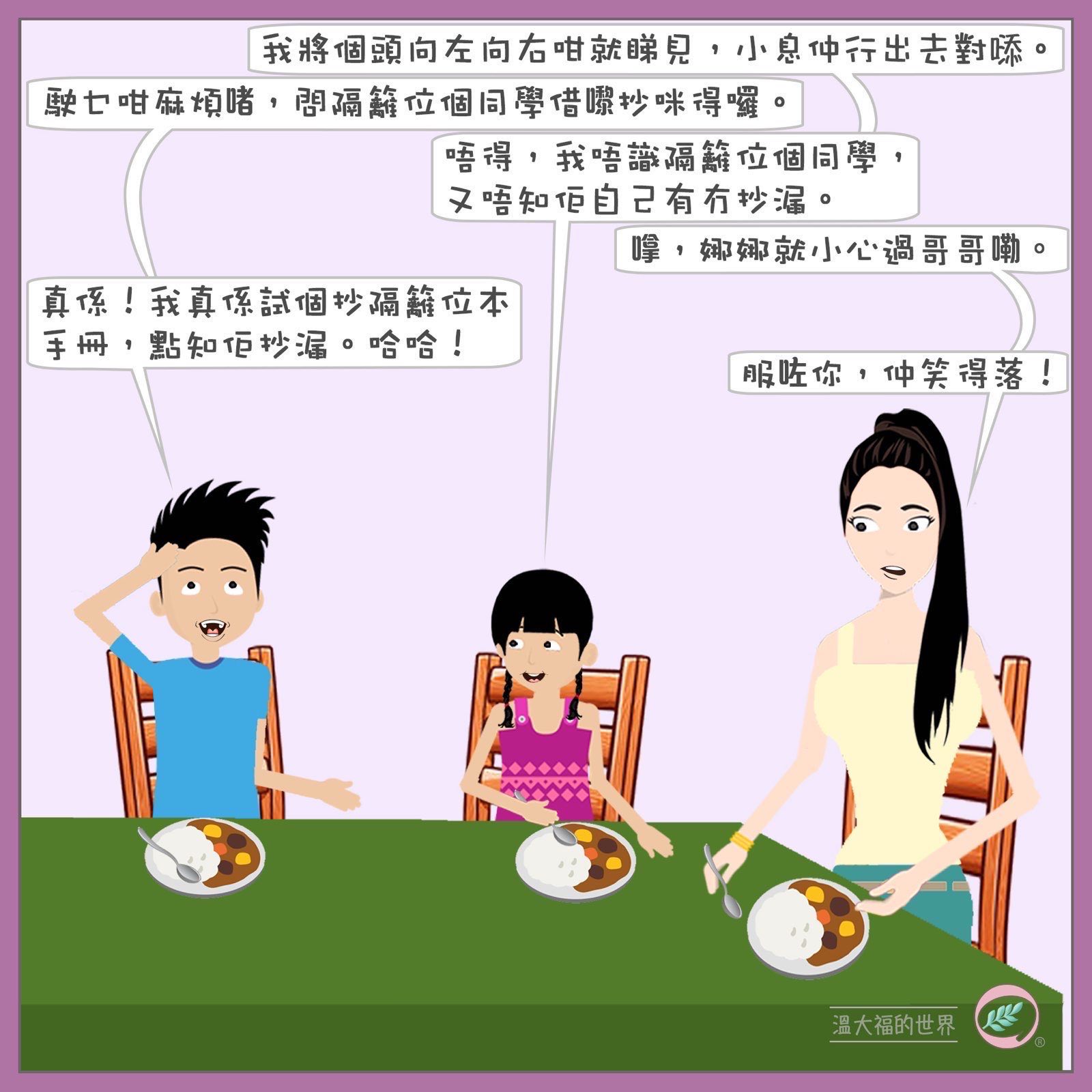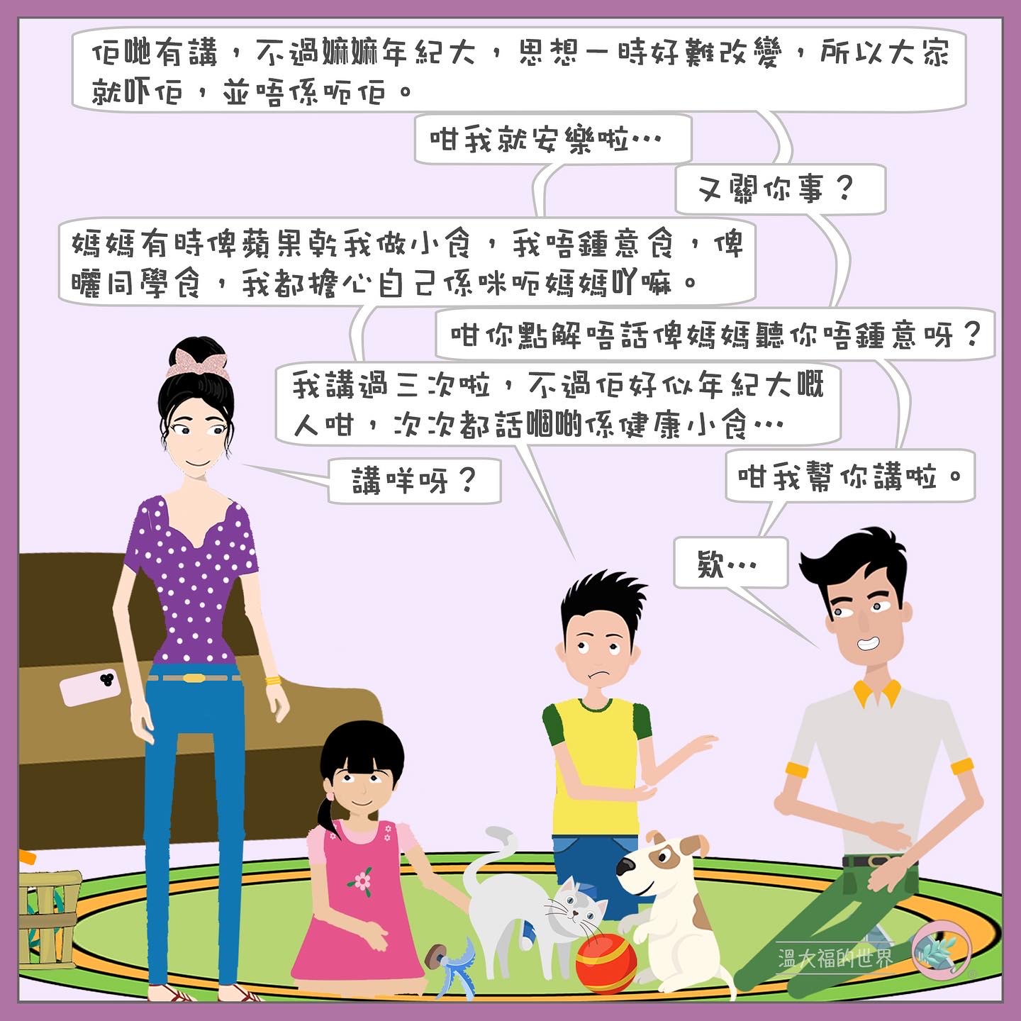 溫氏家庭一家四口,父親溫大福,好好先生,文質彬彬,十分正面。溫太持家有道,盡心教育子女,比較急進,對子女期望十分高。大兒子溫寧,十分活躍喜歡跑步,經常創新,令媽媽覺得難對付。妹妹溫娜,思想型,行事充滿邏輯。